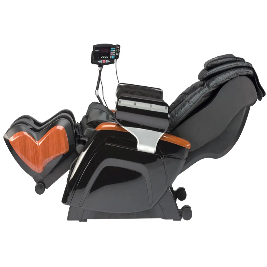- Вспомогательный пульт предоставляет возможность не меняя положения в кресле и не останавливая массаж, изменить положение кресла и управлять музыкой.