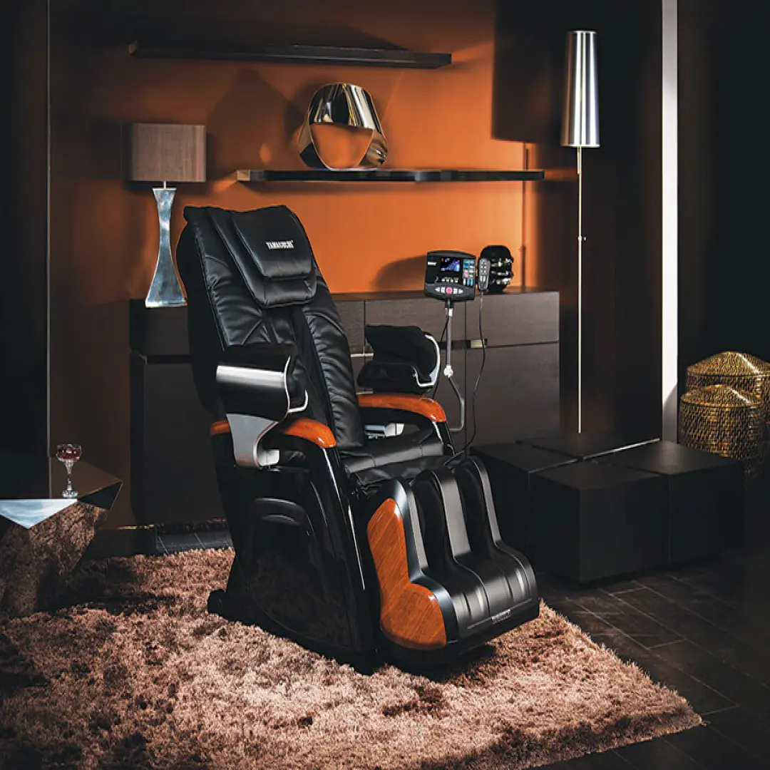 В сидении массажного кресла Yamaguchi YA-3000 встроен механизм для вибромассажа. В зависимости от самочувствия пользователя, доступно пять уровней интенсивности вибрации.